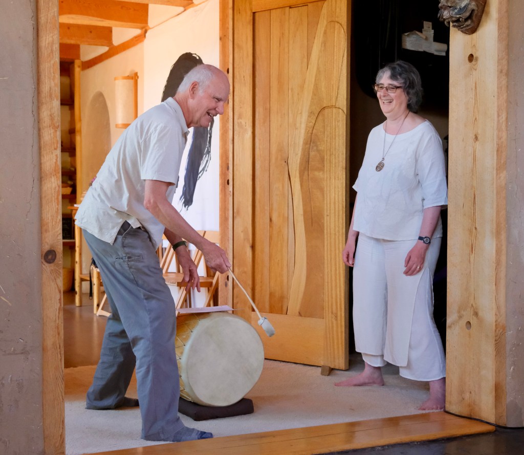 (Carolyn discute des signaux sonores avec Will Brennan au Mountain Cloud Zen Centre. Crédit photo : Grant Goulet)